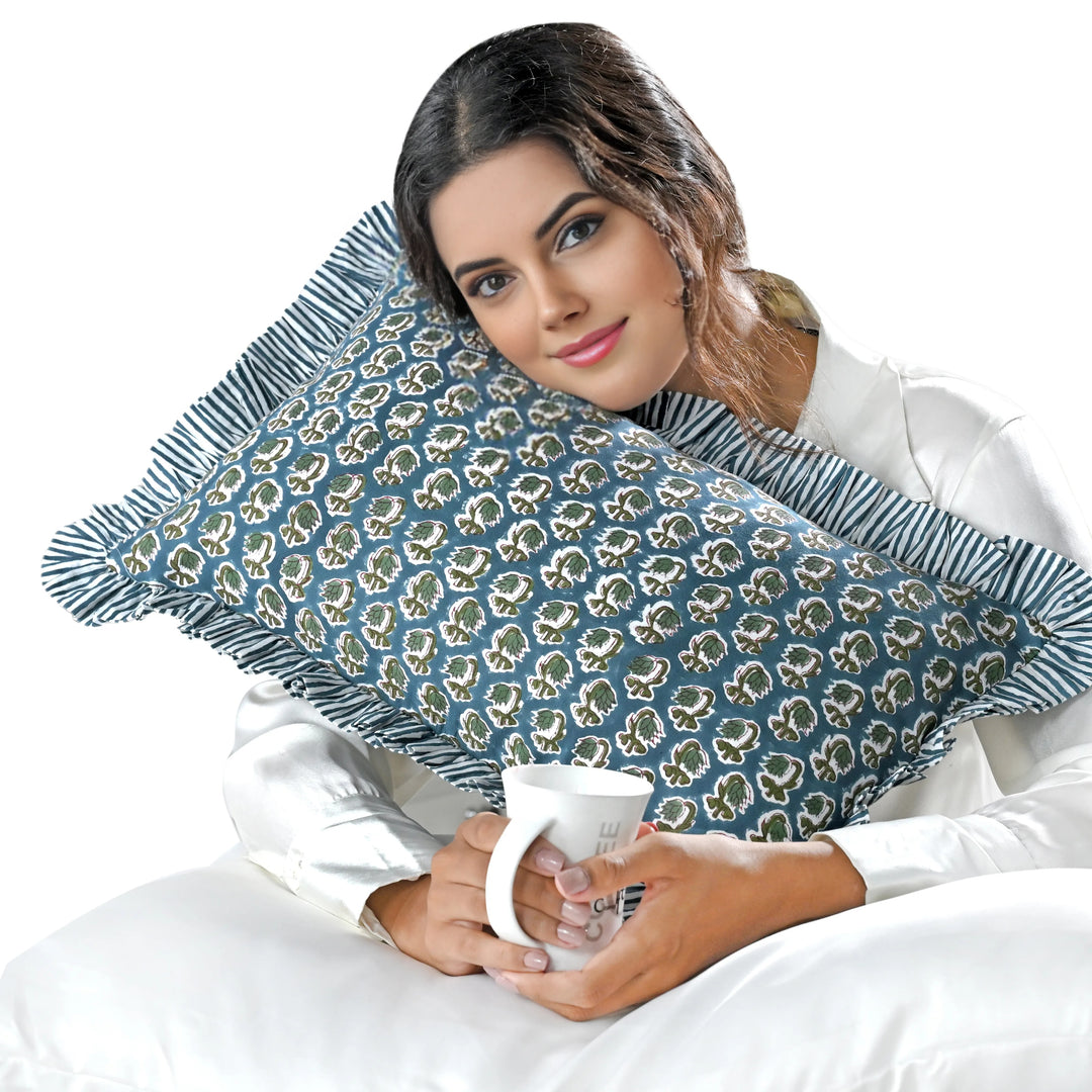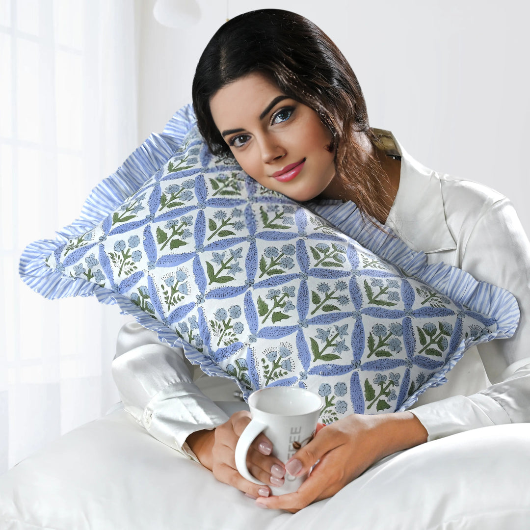 Our cushion covers are made from 100% premium cotton, hand block printed by artisans for a soft feel, natural texture, and long-lasting quality.